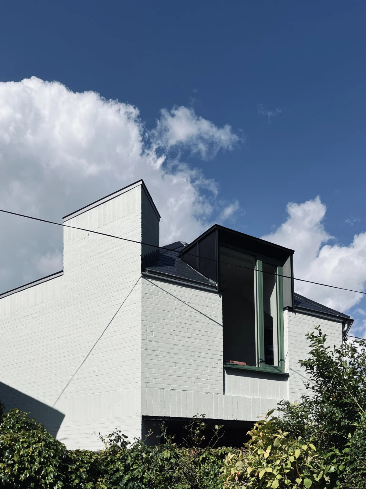 Sitting on a corner of a cul-de-sac, occupying a restricted triangular side area to an existing dwelling – this project remodels an existing 1920s Dún Laoghaire Corporation dwelling. The existing house is a semi-detached dwelling set on a corner at 45° to two existing terraces, and as such the challenge of the design lay in creating a 2-storey extension to the main dwelling responding to these parameters without creating spaces that were impractical.